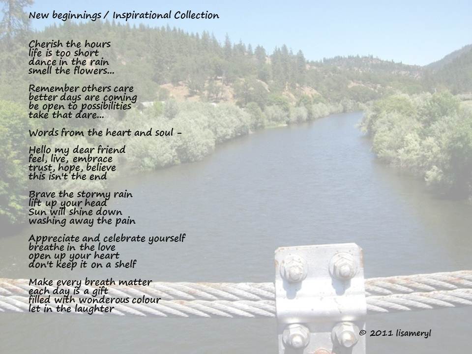 The Inspirational Collection is based on my belief in humanity, life, love, hopes, dreams, sorrow, healing and inspiration. Making a difference in the world by paying it forward.